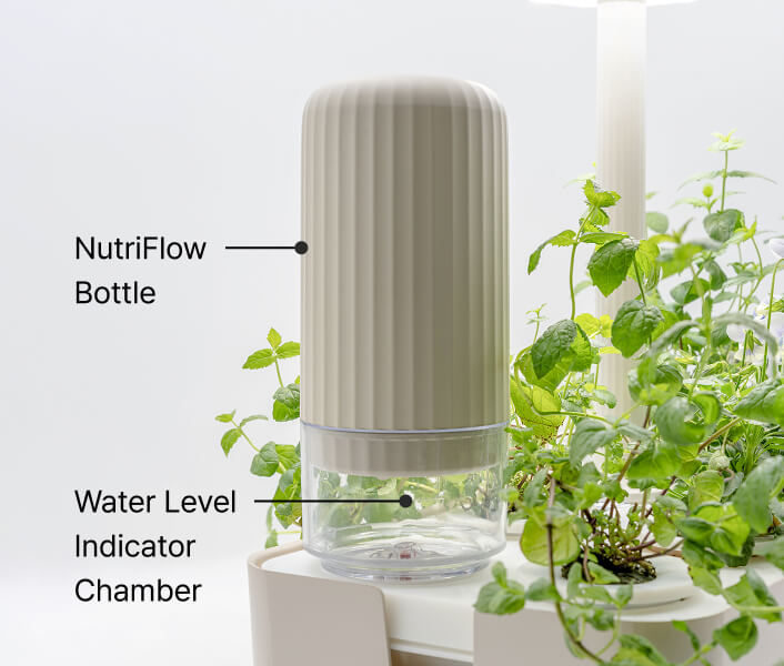After filling the Water Tub, you can also refill the NutriFlow Bottle for continuous drip irrigation. The indicator may rise slightly more after this, which is completely normal.